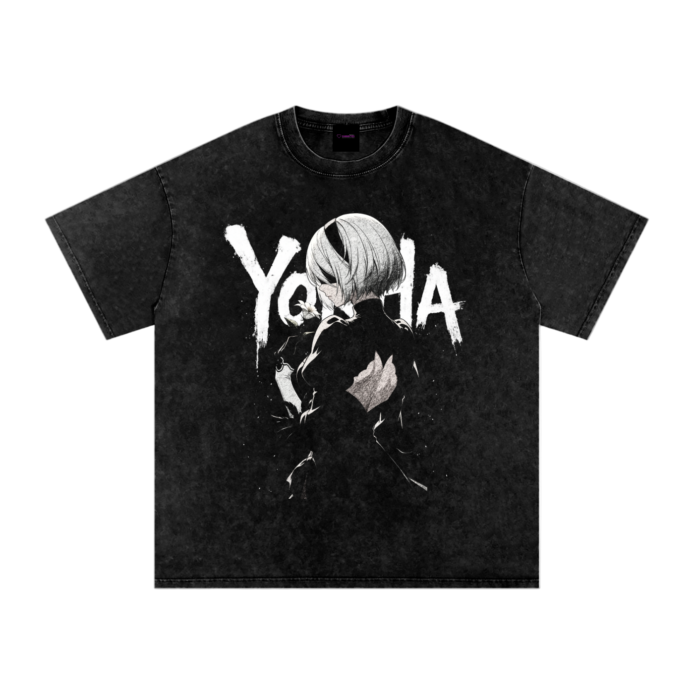 Crafted from 100% premium cotton with a vintage wash for that worn-in look. Oversized fit and striking YoRHa 2B artwork bring both comfort and style.